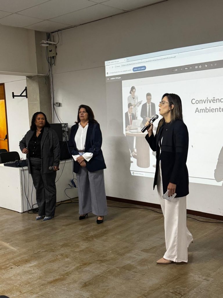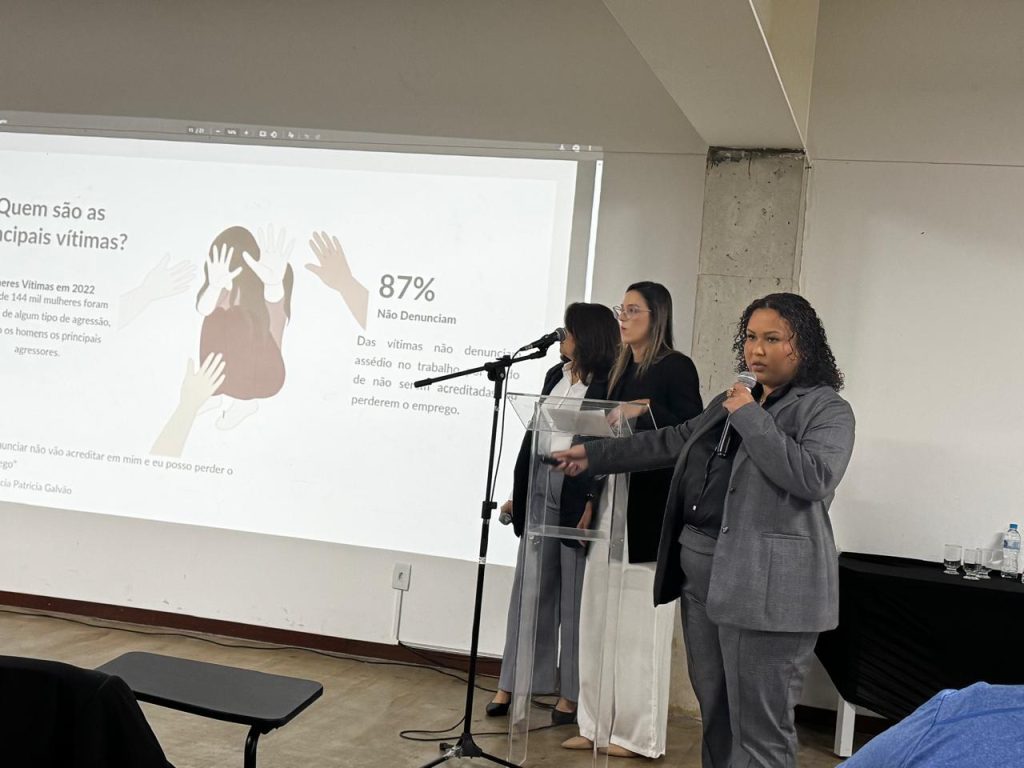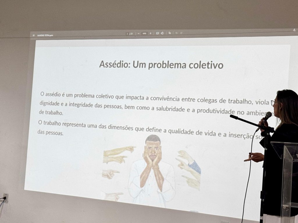 A atividade foi conduzida pelas advogadas Amanda Santos, Cláudia Araújo e Michele Alves, que abordaram os diferentes aspectos do assédio nas relações profissionais, explicando suas formas, consequências e as medidas de prevenção e enfrentamento.