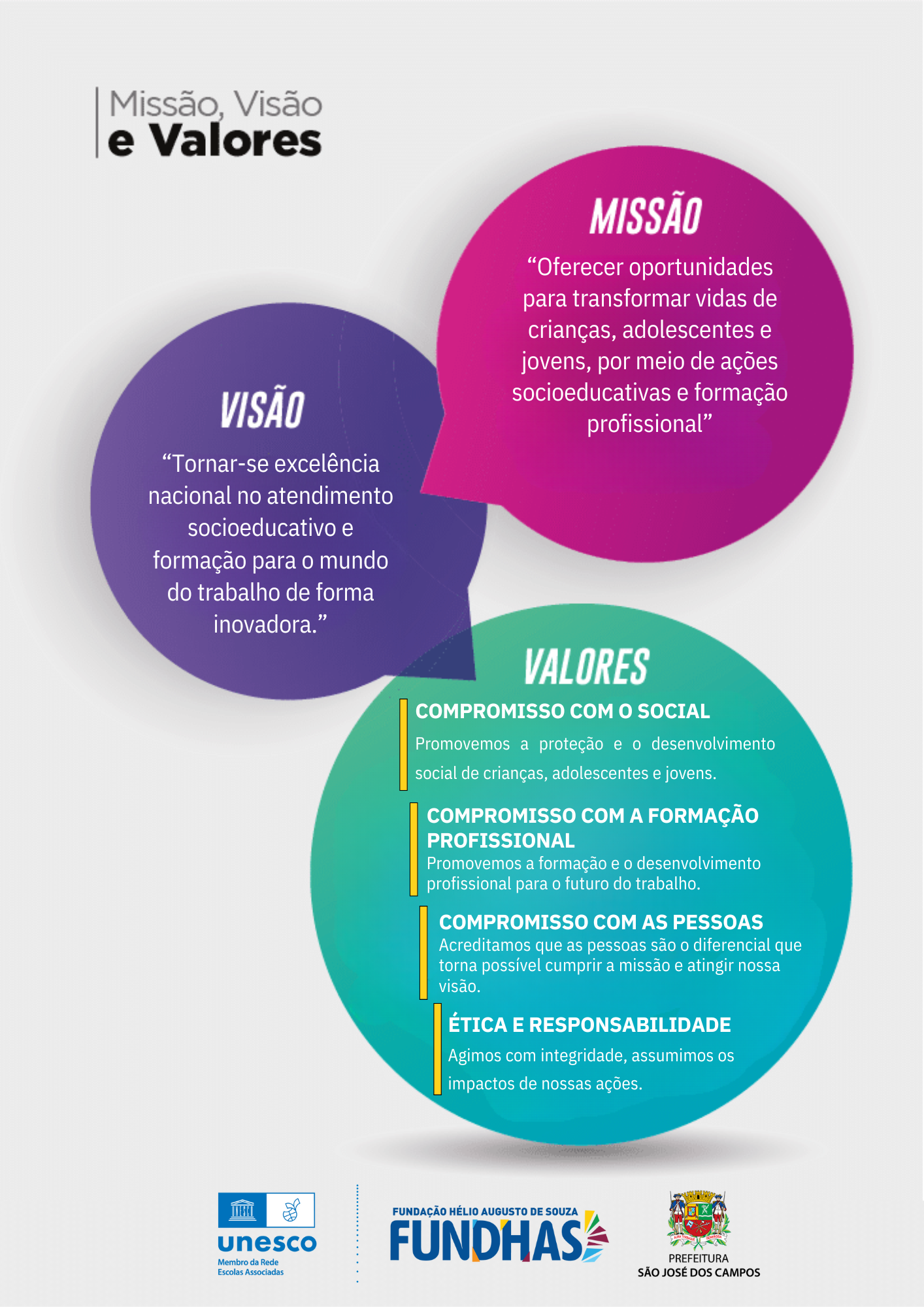A FUNDHAS desenvolve seus trabalhos com foco em “fazer a diferença na vida de crianças e adolescentes” e ser excelência nas ações socioeducativas propostas que possam viabilizar a emancipação social.