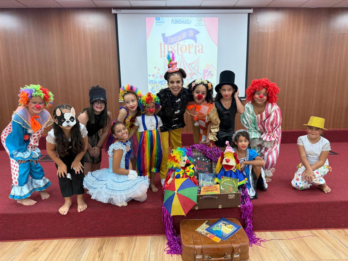 Em comemoração ao Dia Mundial do Livro, a FUNDHAS promoveu o “Festival Infanto Juvenil de Contadores de Histórias – Ciranda de Histórias”. A atividade teve como objetivo despertar o prazer pela leitura e consolidar a cultura leitora entre crianças e adolescentes, envolvendo etapas pedagógicas de preparação, ensaios e apresentações literárias. A participação da atriz, poeta e escritora Daniella Peneluppi enriqueceu o evento de finalização do projeto, que culminou na apresentação de seis narrativas literárias. Os resultados revelaram impactos significativos, como o fortalecimento da expressão oral e corporal, o estímulo à escuta ativa, o desenvolvimento da autonomia e do protagonismo infantil, bem como a ampliação da integração social. A ação contribuiu diretamente para os Objetivos de Desenvolvimento Sustentável, com destaque para os ODSs 4, 10 e 16, alcançando 120 espectadores de diferentes unidades da instituição.